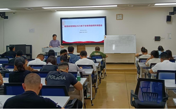 10月15日,学院召开师德师风建设专题会议,全体教职工参加。会议传达了上级文件精神,结合典型案例开展警示教育,强调恪守师德底线、践行“四有”好老师要求。