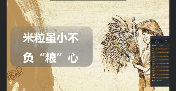 米粒虽小,不负“粮”心。作为新时代的青年,要以中华民族伟大复兴目标为指引,学习艰苦奋斗,敢于拼搏的精神,同时做到珍惜来之不易的粮食,主动承担中华民族复兴之大任。
