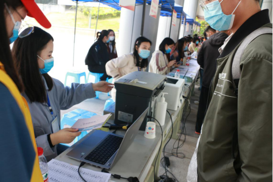 志愿者正在为同学打印资料