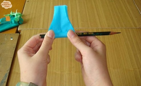 第四步:用笔把花瓣卷一下,让花瓣呈现自然卷曲。把两头用力在桌面上压一下,将花瓣打开,向两侧拉伸一下。花瓣出来了!