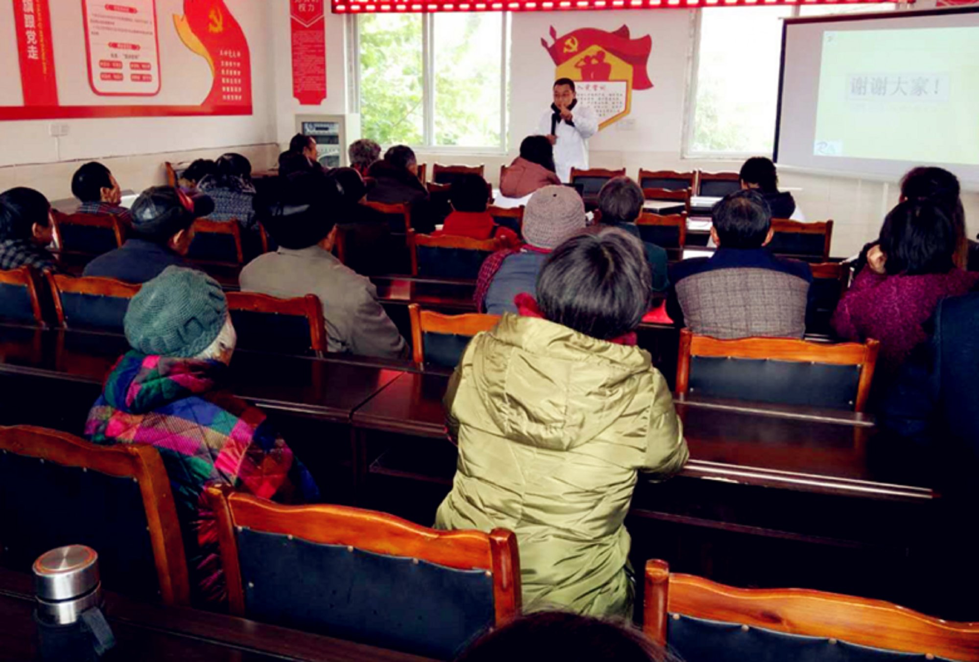 随后康复系党员教师李雪薇、单正根为该村群众进行了 “冬季养生保健” “脊柱相关疾病的康复”健康知识讲座。在讲座过程中考虑到村民的文化水平以及对医学相关知识的接受程度,两位老师采用最接地气通俗易懂的四川方言讲述,并且运用讲练结合的形式充分调动村民们的积极性。