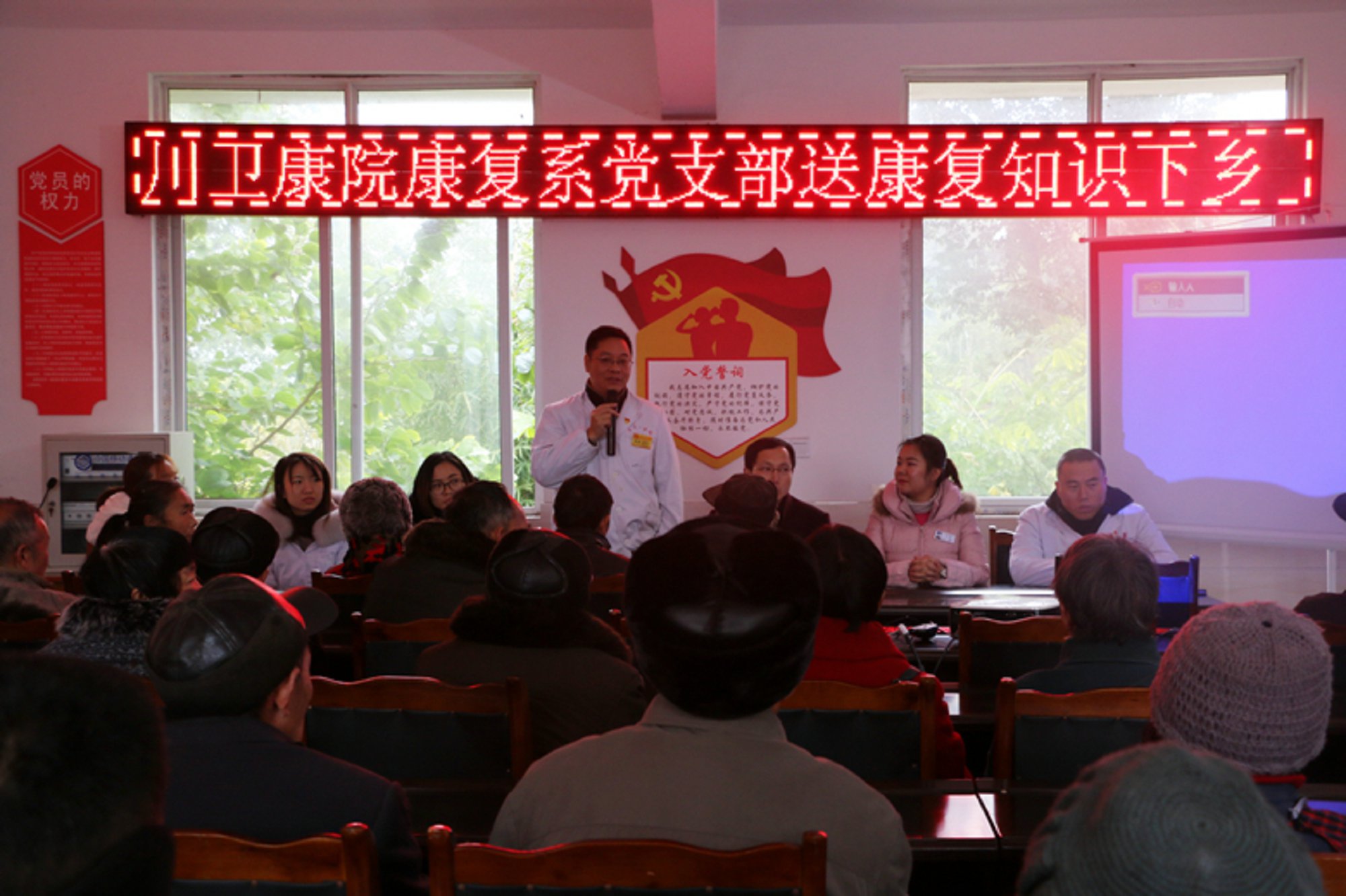 温度康复,真情服务。医疗扶贫是精准扶贫、精准脱贫的重要组成部分,bat365官方网站康复系党支部及附属一、四医院康复科党支部秉承学院“仁济”精神,将康复知识送到基层,帮助那些最需要帮助的群众,践行着全心全意为人民服务的宗旨,为全面建成小康社会、实现健康中国贡献着点滴之力。