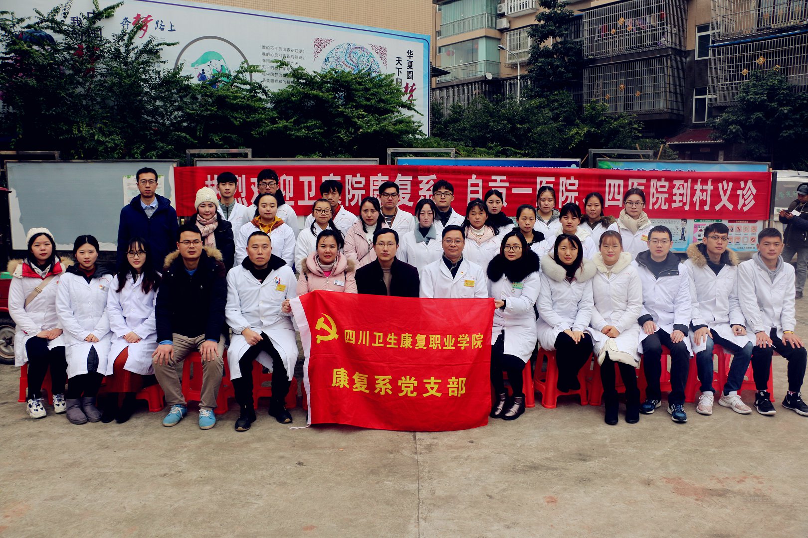 为进一步提升扶贫村广大农民脱贫致富能力,提高健康水平,受富顺县万寿镇莲花村党支部邀请,bat365官方网站康复系党支部携手附属自贡市第一、第四人民医院康复科党支部,在康复系主任、支部副书记章荣及系副主任、常务副书记谭惠的带领下,一行30余人,于2019年1月4日前往莲花村开展义诊活动,向当地村民送去了康复医疗服务。