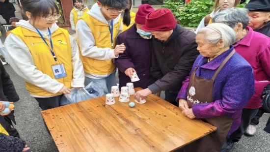 内容:开展环保宣讲、趣味游戏(套圈、纸杯扣球)及才艺互动(合唱《东方红》、健身操),提供个性化陪护。