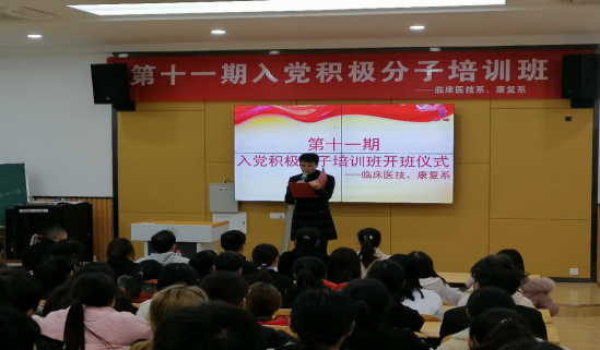 为进一步做好党员发展工作,加强对入党积极分子的教育和培养,2020年11月25日由临床医技系党支部和康复系党支部精心筹备的第十一期入党积极分子培训班开班仪式在4教D205顺利举行。参加此次开班仪式的有党委办公室副主任赵天成、党委办公室贾兰兰、康复系党支部副书记谭惠、临床医技系党员教师代表马泽刚及各系部学员共计80余人。