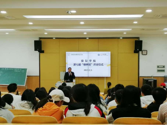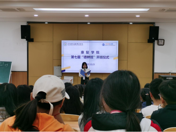 开班仪式上,康复学院副院长谢文贤对德林长期以来支持康复学院人才培养表示感谢,对参加订单班的同学提出期望:要把握“订单班”学习平台,好好学习,强化专业知识提升职业技能,取得好的学习成绩,提升就业竞争力。