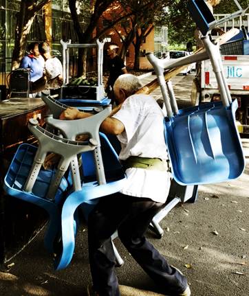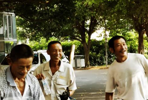 八月的骄阳似火,虽然开工早,但也不抵不住酷暑带来的阵阵热浪。工人们或三五成群,或独自上阵,连搬带扛,汗水不一会儿就浸湿后背。