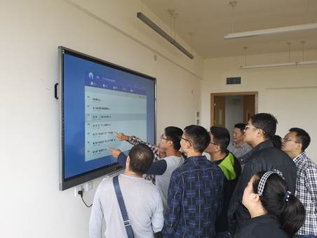 会后,刘文军带领大家参观新校区教室和实验实训室的建设情况,并共同观摩一体化多媒体的演示,为新学期教学工作的顺利开展做好准备。
