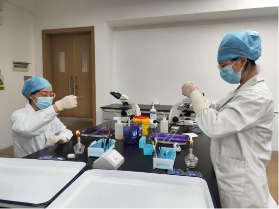 本次比赛对接教育部检验检疫比赛内容,分为初赛和决赛两个环节。初赛内容为参赛队伍根据医学检验技术专业优势和特点,结合临床案例、行业最新发展方向等将医学检验核心技能(手工细胞计数、血涂片制备与染色、革兰染色、总蛋白测定、ELISA等)进行设计和创新,自主确定参赛项目名称,自主设计技能展示项目。决赛内容分为三个模块(A+B+C)。A为形态+理论考核;B为革兰染色;C为白细胞计数。每队每人完成一个模块。