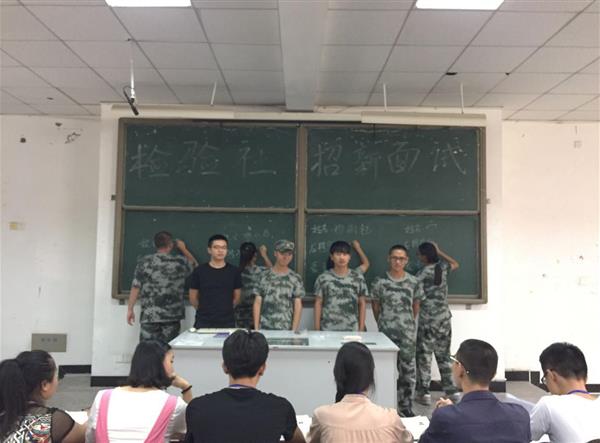 EDTA检验社团面试于2017年9月6日在教学楼A415顺利进行。面试由系部学工干事林波老师,社联主席,检验社团社长等组成评委,通过同学们的自我介绍、现场问答等过程,共选出了35名同学加入EDTA检验社团。
