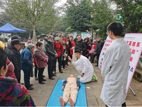 本次志愿服务以满足群众需要,为结对社区定制服务内容,包括健康知识宣讲、血糖血压监测、康复理疗体验、眼视功能检查、心肺复苏培训等。社区老百姓热情参与、互动交流。临床医技学院副院长刘孝祯现场指导,志愿服务队把健康理念和专业知识传播至仙市古镇,进一步增强了群众的获得感、幸福感。