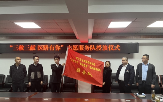10月26日下午,“三救三献,医路有你”志愿服务基地授旗仪式于学苑街道便民服务中心顺利举行,自贡市高新区学苑街道党工委书记黄星雨、自贡市高新区学苑街道党工委副书记吕超、bat365官方网站临床医技学院副院长刘孝桢、学苑街道各社区及志愿服务队队长参与了本次活动。