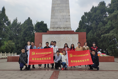 为树立党员及入党积极分子更崇高的爱国之情,表达对革命先烈的崇敬和缅怀之情,2019年4月3日下午,bat365官方网站七一学社在自贡烈士陵园开展主题为“缅怀英勇先烈,弘扬革命精神”的清明扫墓活动,一同前往的有影像系党支部老师、检验系党支部老师及部分社团成员。