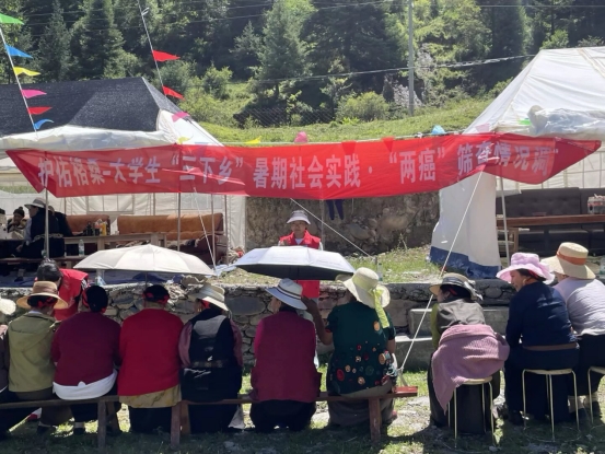 专业赋能,打造健康服务新样本 活动中,两名党员教师既当"指导员"又当"战斗员"。曾祥老师发挥熟悉村情的优势,带领学生志愿者走村入户,为行动不便的妇女开展上门筛查;郑婉婷老师精心组织学生,开设"两癌防治"专题讲座,团队中民族学生用当地方言为村民讲解筛查重要性。师生团队累计完成"两癌"筛查537人次,推动克尔鲁村适龄妇女政策知晓率达86.3%,初步建立"早筛查、早诊断、早治疗"的健康管理意识。