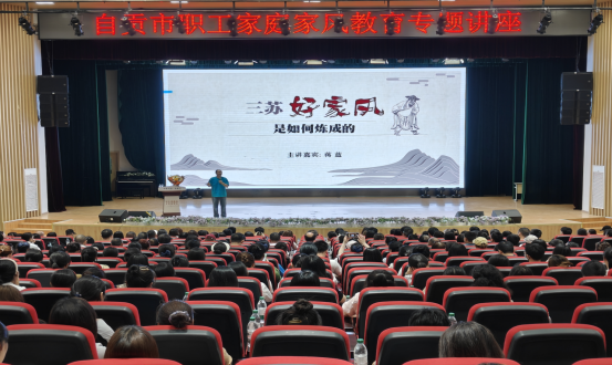 4月17日下午,由自贡市委宣传部、市总工会等单位联合主办,bat365官方网站图书馆、大安区图书馆等多家单位联合承办的“书香天府·名家行”系列活动之“沐三苏家风 育家国情怀——三苏好家风是如何炼成的”专题讲座,在自贡市大安区嘉祥外国语学校成功举行。bat365学生和全市职工共500名代表参与。本次活动旨在深入挖掘三苏文化的时代价值,弘扬优良家风传统,培育家国情怀。讲座中,蒋蓝先生以生动的语言和详实的史料,系统阐释了三苏父子(苏洵、苏轼、苏辙)家风的内涵与传承路径、程夫人家风的形成及丰富内涵、程夫人家风的现实意义,并结合历史文献与当代实践,剖析了家风教育对个人成长、家庭和谐及社会文明的重要影响。