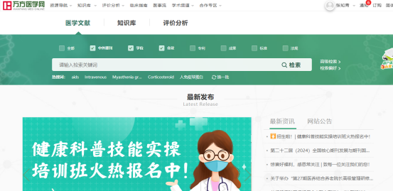 万方医学网资源包括:期刊、学位、会议、医学外文期刊、医药视频、临床百家、中医药知识库产品、临床诊疗知识库、标准、专利、成果、法规。