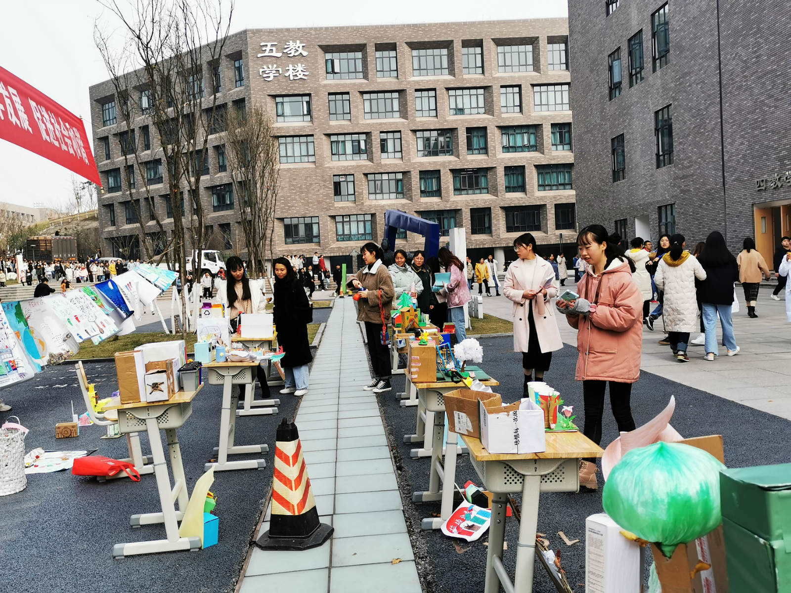 首先,教师在12周教学中就进行任务布置,学生课后以团队合作方式利用身边的物品“变废为宝”并查找相应资料完成作品。其次,在14周实践教学课中学生在班级内部展示了海报、创意产品、视频等形式多样的成果,并宣传了“什么是垃圾分类、为什么要进行垃圾分类、应该怎样进行垃圾分类”等知识。最后 ,教师对于活动进行总结,并在每个班级内部收集优秀成果在校园进行集中展示。