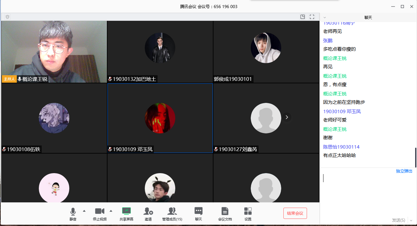 尽管已经参加过多次培训和演练,但是在前两天的授课中,个别老师对直播教学软件的操作还是不够熟练,比如“自言自语”了几分钟后才看到自己一不小心把声音关掉了。当然,偶尔的网络卡顿,使得老师们上课的声音从教师端的行云流水到了学生端就成了恐怖剧情的专用配音。还有,老师们和同学们互动得最多的一句话就是:歪,听(看)得到吗?嗯,听(看)得到。可是,这些丝毫都没有影响到同学们上课的热情,如有些同学听到老师们的声音以后就爱上了这门课,有些同学在下线之前还忍不住关心有点消瘦的老师,有些同学下课后还在学习通上继续发言讨论等。