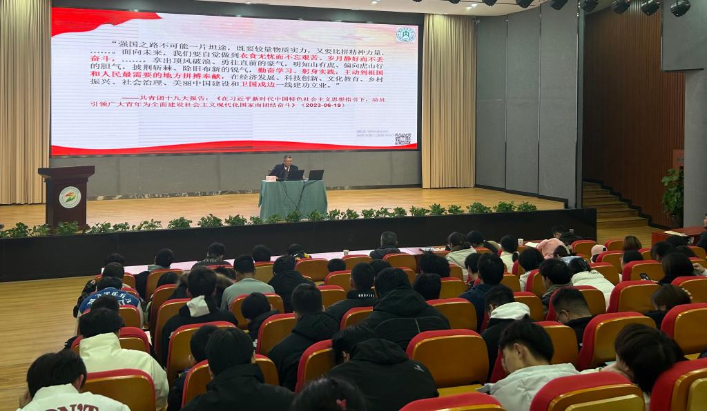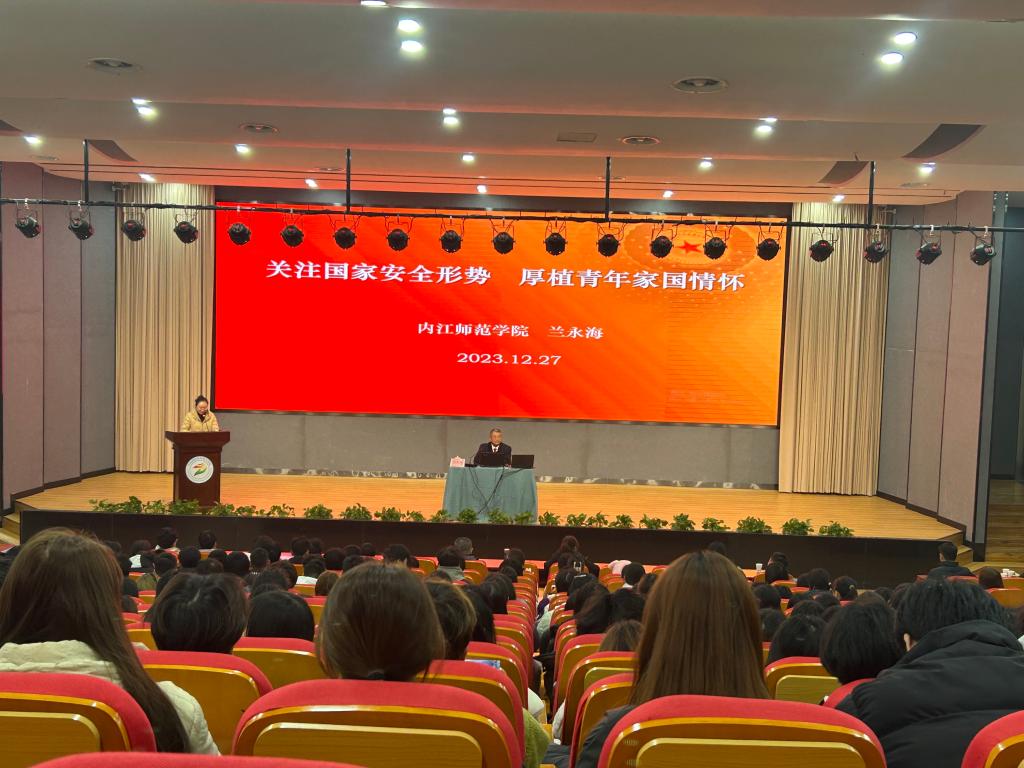 随后,兰永海以“关注国家安全形势 厚植青年家国情怀”为主题,紧扣当前我国国家安全面临的新形势、新特点、新现状和我国改革强军伟大实践重点领域话题,从“不可不察-我国周边国家安全环境、安不忘危-改革强军固国防、强国有我-厚植青年家国情怀”三个层面进行了详细介绍。兰永海鼓励广大青年学子要了解时代国防教育主题,向着复兴目标勇毅前行,要崇军尚武,厚植家国情怀,进一步深化了师生对我国国家安全形势和巩固国防使命担当的了解和认知。