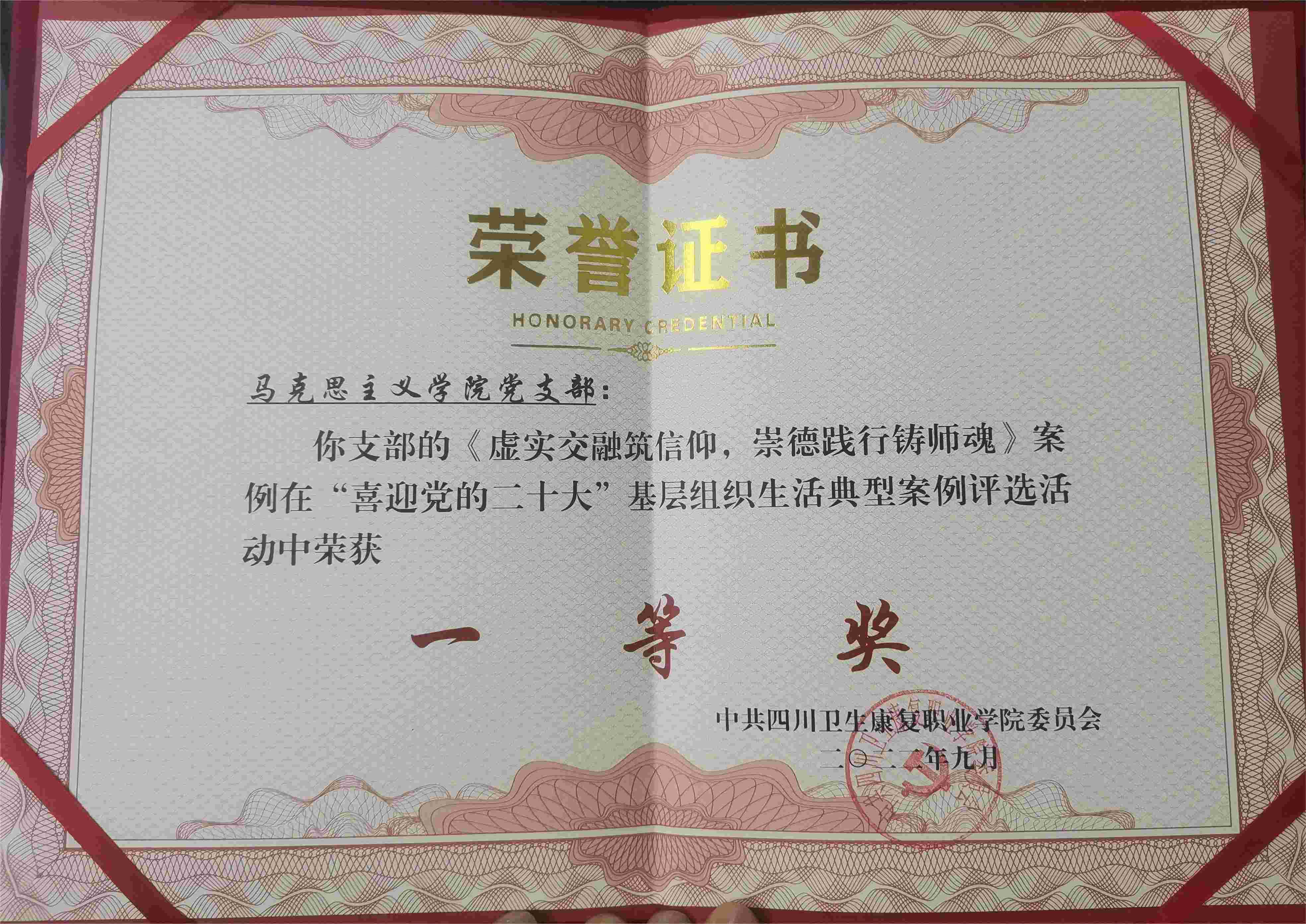 在近期学校党委组织的支部“三会一课”优秀案例评选中,马克思主义学院党支部——虚实交融筑信仰 崇德践行铸师魂“三会一课”案例在学校以及附属一、四医院二十多个支部中得到集体称赞和推荐,荣获一等奖。