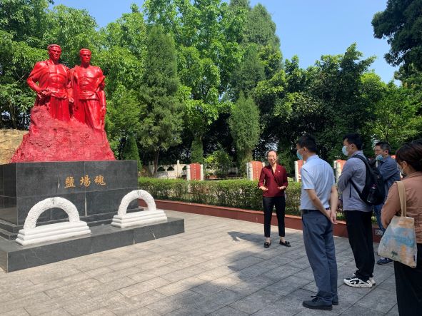 随后,支部书记秦丹在“盐场魂”雕塑前向全体党员讲述了领导自贡盐业工人运动的先锋烈士——肖凤阶的故事,革命先烈的英勇事迹回荡在烈士陵园上空,更印刻在每位党员的心中。
