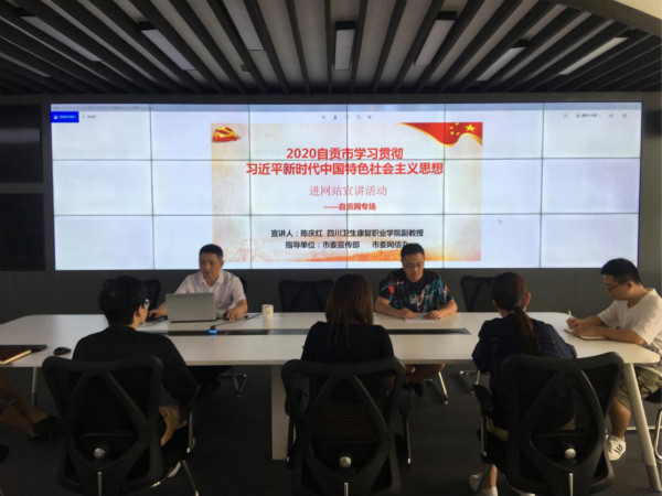 2020年7月3日下午,由市委宣传部、市委网信办联合主办的“2020自贡市学习贯彻习近平新时代中国特色社会主义思想进网站宣讲活动—自贡网专场”在自贡日报社演播大厅举行。思政部副教授陈庆红主讲了题为“从‘全民战役’看‘中国之治’”的党课。市委宣传部理论科副科长乔亮主持本次宣讲活动,部分融媒体从业人员及思政部教师聆听了此次宣讲活动。