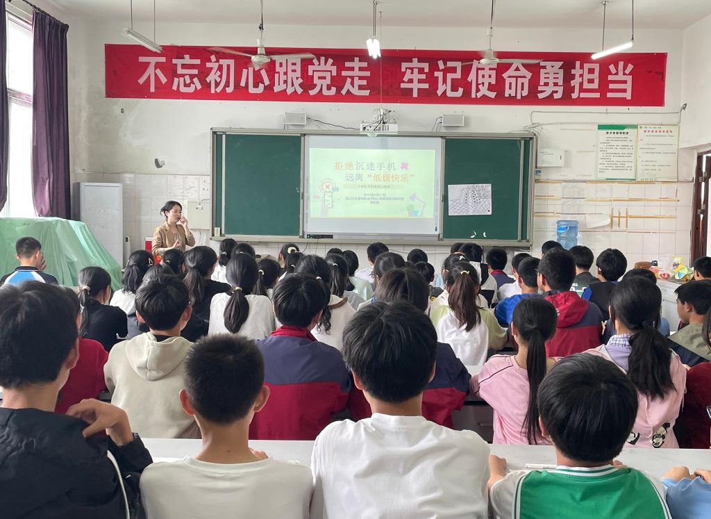 梁乾琳老师为古佛镇九年制学校学生带去了“拒绝沉迷手机,远离‘低级快乐’”的团辅活动。“猜谜语”切入,以“一站到底”的破冰游戏和经典的心理学实验,穿插趣味心理活动,将理论与实践相结合,让同学们认识到沉迷手机的危害,引导学生思考沉迷手机的原因,剖析娱乐产品上瘾带来的即时满足,探索丢掉“低级快乐”的方法。学生积极分享,乐于参与。活动最后,梁乾琳老师激励同学们要“拿得起,放得下”,提高自我对生活的掌控感,发展新的兴趣爱好,做让自己有成就感的事,享受正向反馈带来的高级快乐。