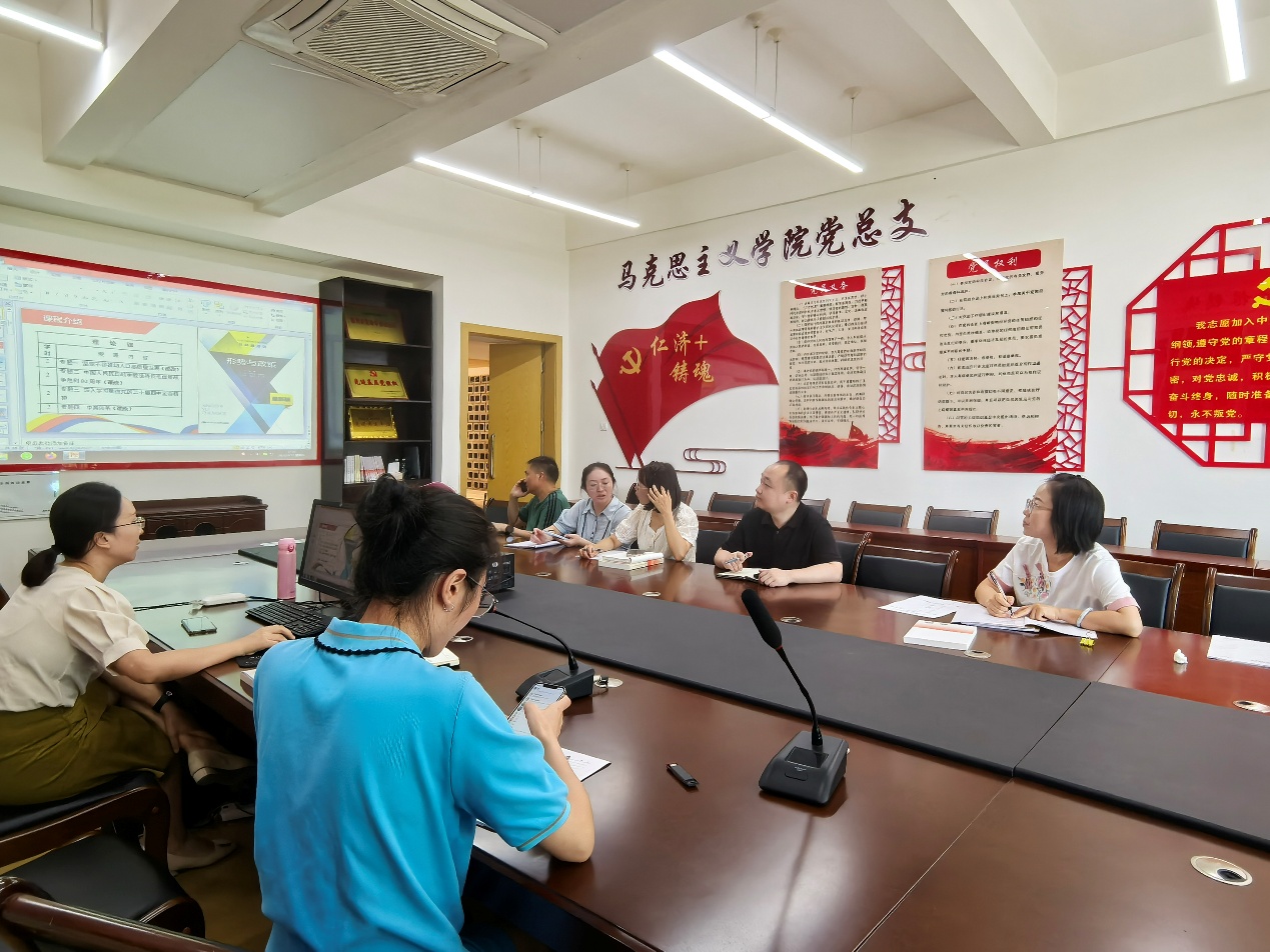 本次备课会紧扣党建引领主线,各教研室结合学科特点精准发力:习近平新时代中国特色社会主义思想教研室以导论为核心,聚焦理论框架构建,精心设计学生活动,让有意义的课更有意思;马中化教研室以“1234”学习线索捋清历史时间脉络,以“九三阅兵”的时政热点为切入点,讲清楚马克思主义中国化时代化的必要性以及相关理论;形策教研室围绕人口高质量发展专题,结合党的政策梳理资料,探索情境教学与小组讨论模式;德法教研室紧扣担当复兴大任 成就时代新人主题,将社会主义核心价值观融入教学,通过党员事迹分享激发学生共鸣;历史教研室从四史中挖掘资源,以严谨史料引导学生传承红色基因。