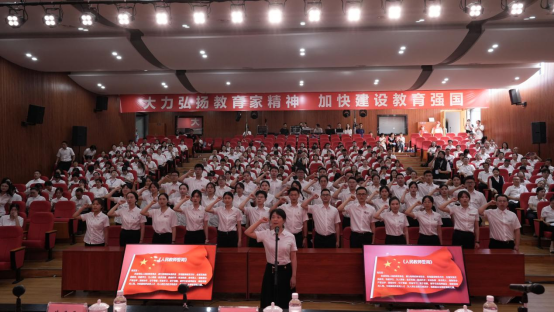 会上,马克思主义学院院长、四川省“四有”好老师秦丹以“弘扬教育家精神”为题作了发言。学校和附属医院领导为“四有”好老师和“三十年”教龄教师代表颁发荣誉证书。“三十年”教龄教师代表肖骞教授带领全体新教师进行教师宣誓仪式。