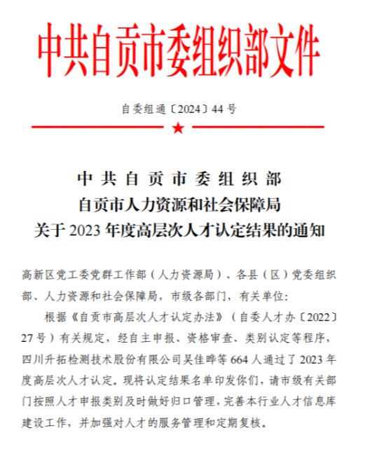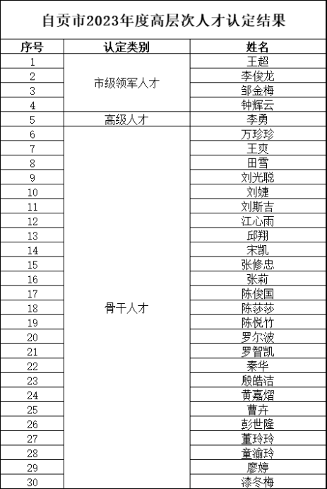 近日,中共自贡市委组织部、自贡市人力资源和社会保障局公布了2023年度高层次人才认定结果,学校共有30名教师被认定为市级高层次人才,其中市级领军人才4名、高级人才1名、骨干人才25名。