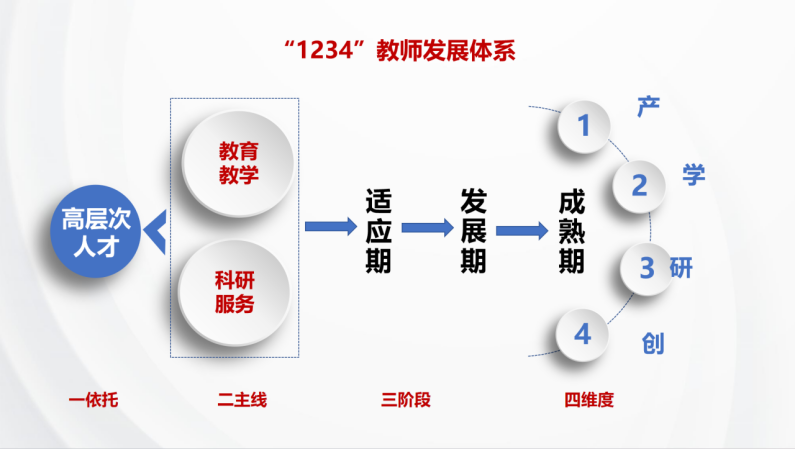 学校党委历来高度重视人才队伍建设,以党为舵,大力实施“人才强校”工程,坚持以“一把手”抓“第一资源”推动队伍建设,依托“一校两附院”的运行体制,在创新人才政策、加大资金投入、关爱尊重人才、打造川康品牌四个方面上持续着力,探索构建“1234”教师发展体系,以高层次人才为依托,以提升教育教学、科研与服务社会能力为主线,从适应期、发展期、成熟期三阶段着力,不断打造产、学、研、创四维突出的教师队伍。学校“双师型”教师占比明显提高,高层次人才结构持续优化,教师高水平教育教学与科研成果实现新的突破。