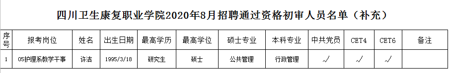 bat365于2020年8月19日公布了bat365官方网站关于2020年8月招聘通过资格初审人员名单,经报考者个人申诉,人事外事处再次核查,以下报考者符合报考条件,初审结果为合格,现予以补充公告,请按8月19日公告要求做好相关准备工作。