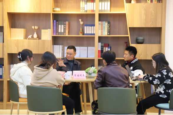 谈话内容是关于同学们关心的,比如退役复学后的学习困惑、退役军人专升本政策、拓展校外志愿服务、求职就业、留学生工作等方面问题,章荣副校长耐心聆听并结合学校建设与发展规划、专业学习与行业发展概况、志愿服务意义等一一与同学们做了交流,悉心答疑解惑。