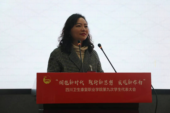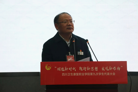 共青团自贡市委副书记兰斓代表共青团自贡市委向大会的顺利召开表示热烈的祝贺,对学院的团学工作表示肯定,并提出习近平总书记十分重视青年工作。今年年初在给北京大学援鄂医疗队的回信中指出:“青年一代有理想、有本领、有担当,国家就有前途,民族就有希望。”并勉励广大青年要“让青春在党和人民最需要的地方绽放绚丽之花。”希望同学们创造出更加辉煌的青春业绩。