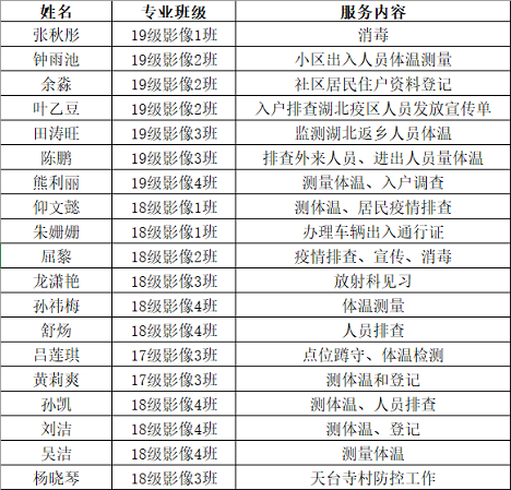 新型冠状病毒疫情发生以来,全国开启了疫情防控“阻击战”。bat365官方网站校团委高度重视,迅速部署开展各项防控工作。广大团员青年医学生积极响应号召,充分发挥先锋模范作用,在做好自我防护的同时发挥医学专业特长,积极参与家地卫健、团组织、社区等相关组织部门疫情防控工作,共计160名团员青年在27市、79个区县、116个社区/街道/村委等进行预检分诊、消毒防护、体温检测、入户摸查和疫情宣传等防控工作。