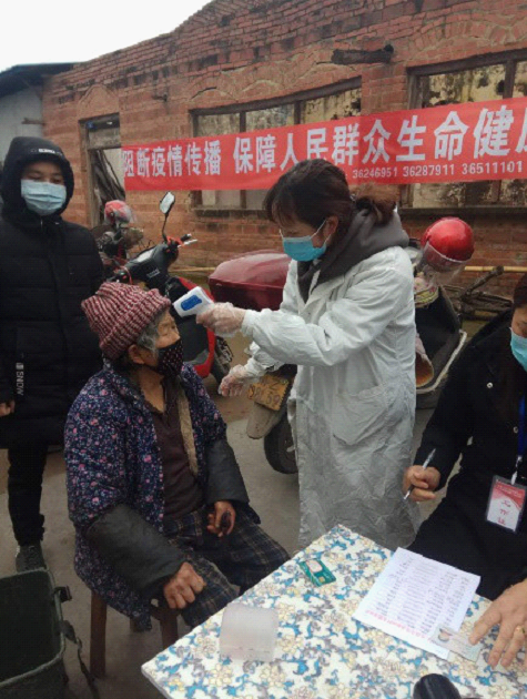 来自19级中药4班的徐莲同学和19级中药1班的杨迎雪同学也积极加入社区防疫的工作中。给返乡的村民测量体温、宣传疫情防护是她们每天做的事,看到全国确诊病例与日俱增,她们想贡献自己的小小力量,共同打赢这场防控阻击战。