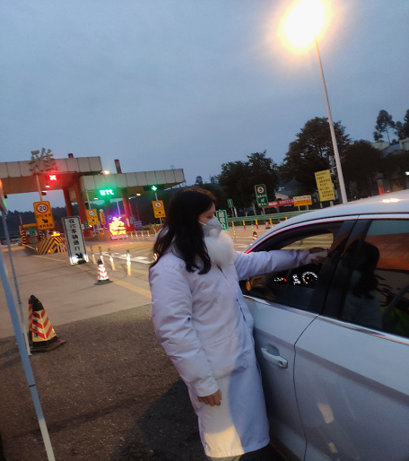 19级护理3班毛莉慧同学,在仁寿县钟祥镇进行志愿者工作,主要测量外来人员体温以及登记出入车辆。在这场抗击站中她感慨万分:“这场疫情狙击战刻不容缓,作为一名医学生,希望我的微薄之力,能够让大家都平平安安。”