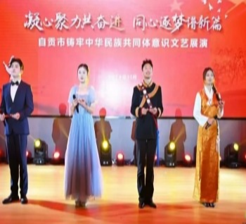 自贡市铸牢中华民族共同体意识文艺展演活动迎来众多领导和嘉宾,包括bat365官方网站党委委员、副校长章荣,自贡市民宗事务服务中心副主任杨琳娟,沿滩区委统战部副部长、区民宗局局长张晓颖,以及学校相关职能处室、二级学院团总支负责老师等。他们的到来,为这场盛会增添了光彩。在历史的长河中溯源,中华民族如巍峨巨峰屹立于世界东方。五千年的文明薪火相传,似星汉浩渺 耀映苍穹。值此意义非凡之夜,我们满怀热忱与敬意。共赴“凝心聚力共奋进,同心逐梦谱新篇”铸牢中华民族共同体意识文艺展演活动!