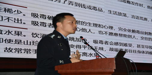 讲座上,姚主任为师生们仔细讲解了禁毒戒毒案例分析、毒品常识、禁毒法律常识,并与同学们进行了互动,播放了吸毒者脑死亡和禁毒警示教育视频,让师生们深刻地了解了毒品的危害,真正认识到文明、健康有序生活方式的重要性。