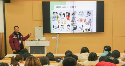 曾大为主任为同学们详细讲解了艾滋病的特点、自然病程以及传播途径,还对流感、诺如病毒的病理反应及预防措施进行了深度的分析。最后,提醒同学们应提高自身的抵抗力,多参与体育锻炼。