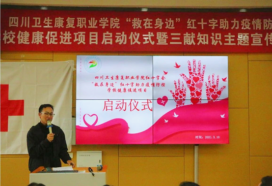 3月10日,校红十字会在1—B205教室举行“救在身边”红十字助力疫情防控学校健康促进项目启动仪式,市红会朱海宁、柳梅一行出席,校党办赵天成、校团委王庆和项目团队及志愿者参加了启动仪式。