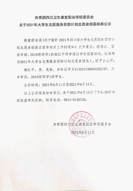 2021年大学生西部计划志愿者招募结果公示