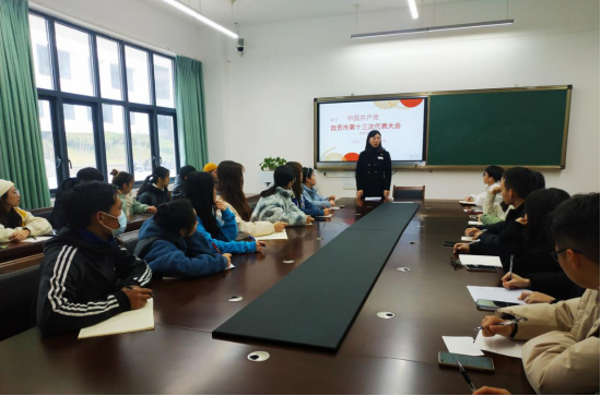 12月3日,中共自贡市第十三次代表大会党代表、bat365官方网站康复学院副院长谢文贤为学生宣讲市十三次党代会精神。