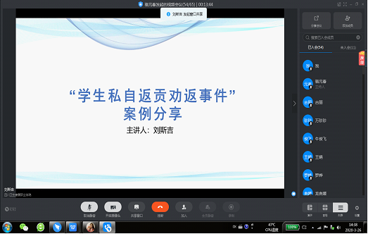 培训会上,康复系刘斯吉、检验系高静两位老师从事件背景、处理过程、总结反思三个方面分享了他们在疫情期间处理学生工作的案列和好的工作做法。
