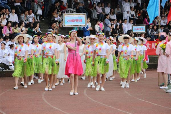 开幕式上,各班队列踏着和煦的春风,载着青春的梦想,创意百出,展现着各班独有的特色。有的班级队形如同医用注射器,表达了他们共享健康,共享运动的理念;有的班级头戴七彩花环跳着草裙舞,印入眼帘,活力四射,朝气蓬勃;有的班级身着旗袍,婀娜多姿,展现了东方女性独有的魅力......