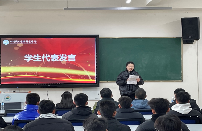 各二级学院党总支书记、分管学生工作副院长、学生科科长、辅导员代表等人员参加此次活动。会上,学生代表发言,感谢学校与老师的支持与培养,励志在以后的日子里更加努力学习,提高自身专业能力和综合素质。
