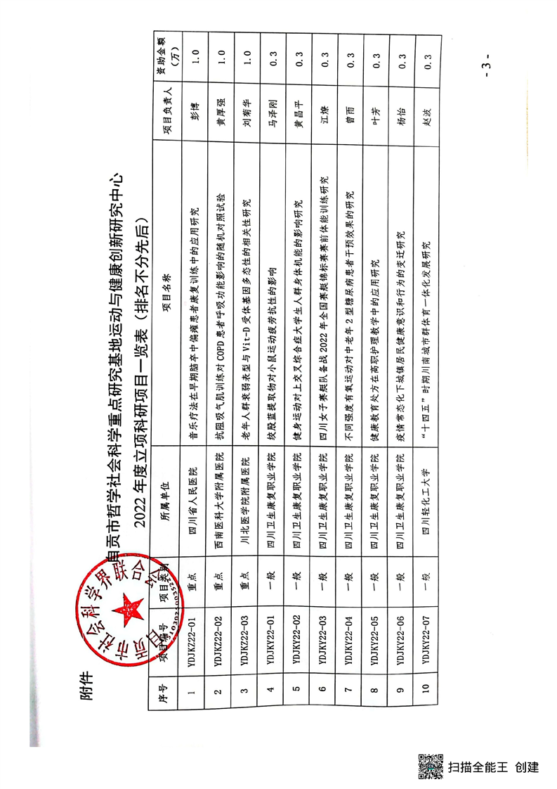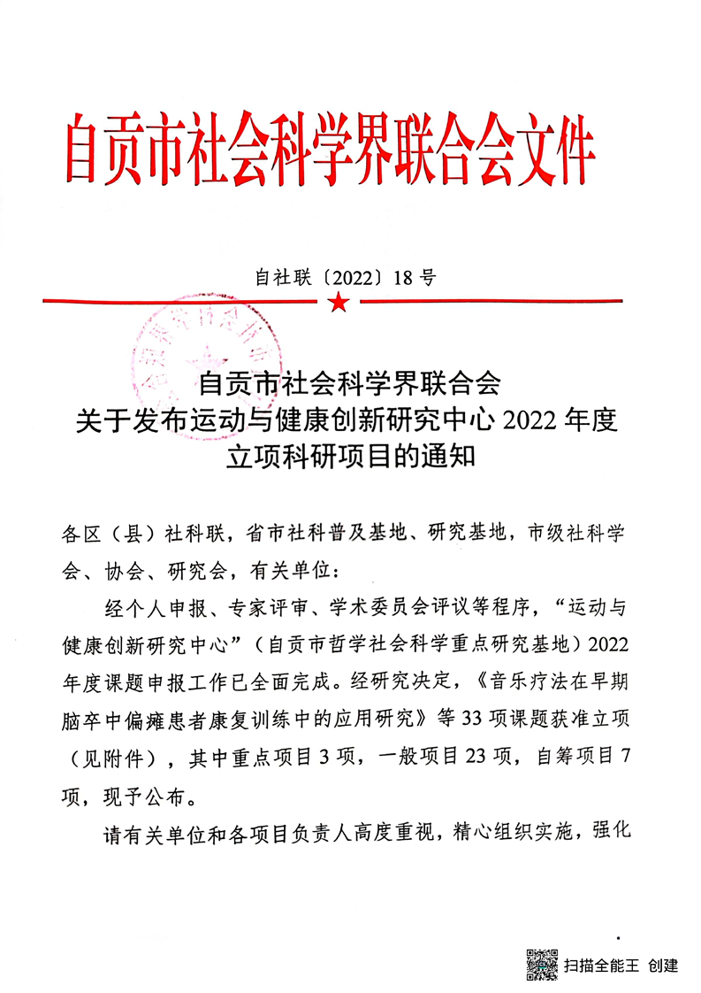 【立项通知】关于运动与健康创新研究中心2022年科研项目立项的通知