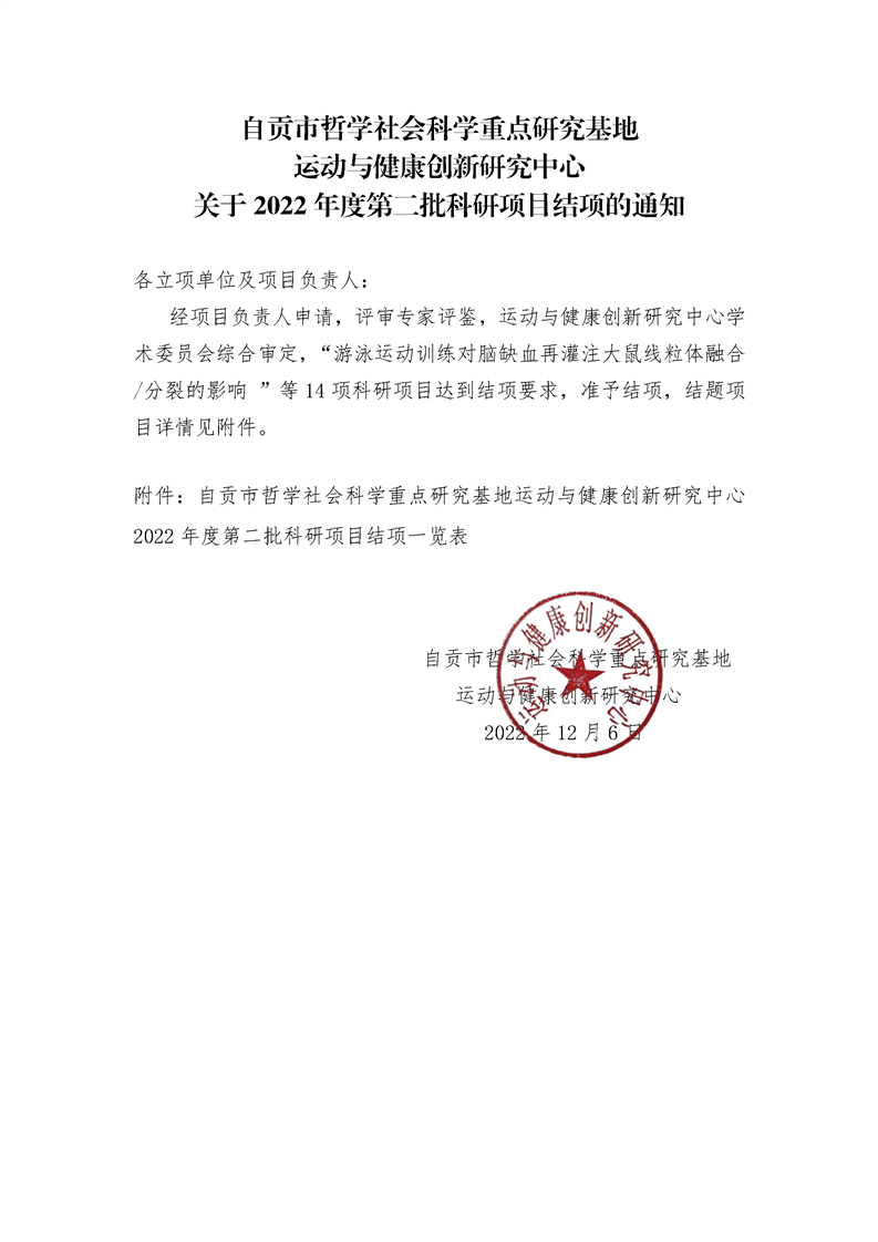运动与健康创新研究中心关于2022年度第二批科研项目结项的通知
