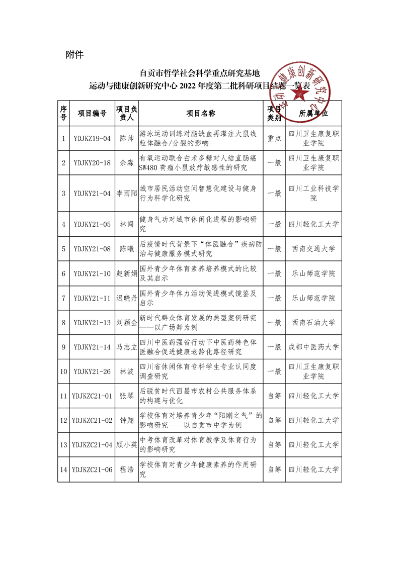 上一条:【项目申报】 自贡市哲学社会科学重点研究基地 运动与健康创新研究中心2023年度项目申报通知