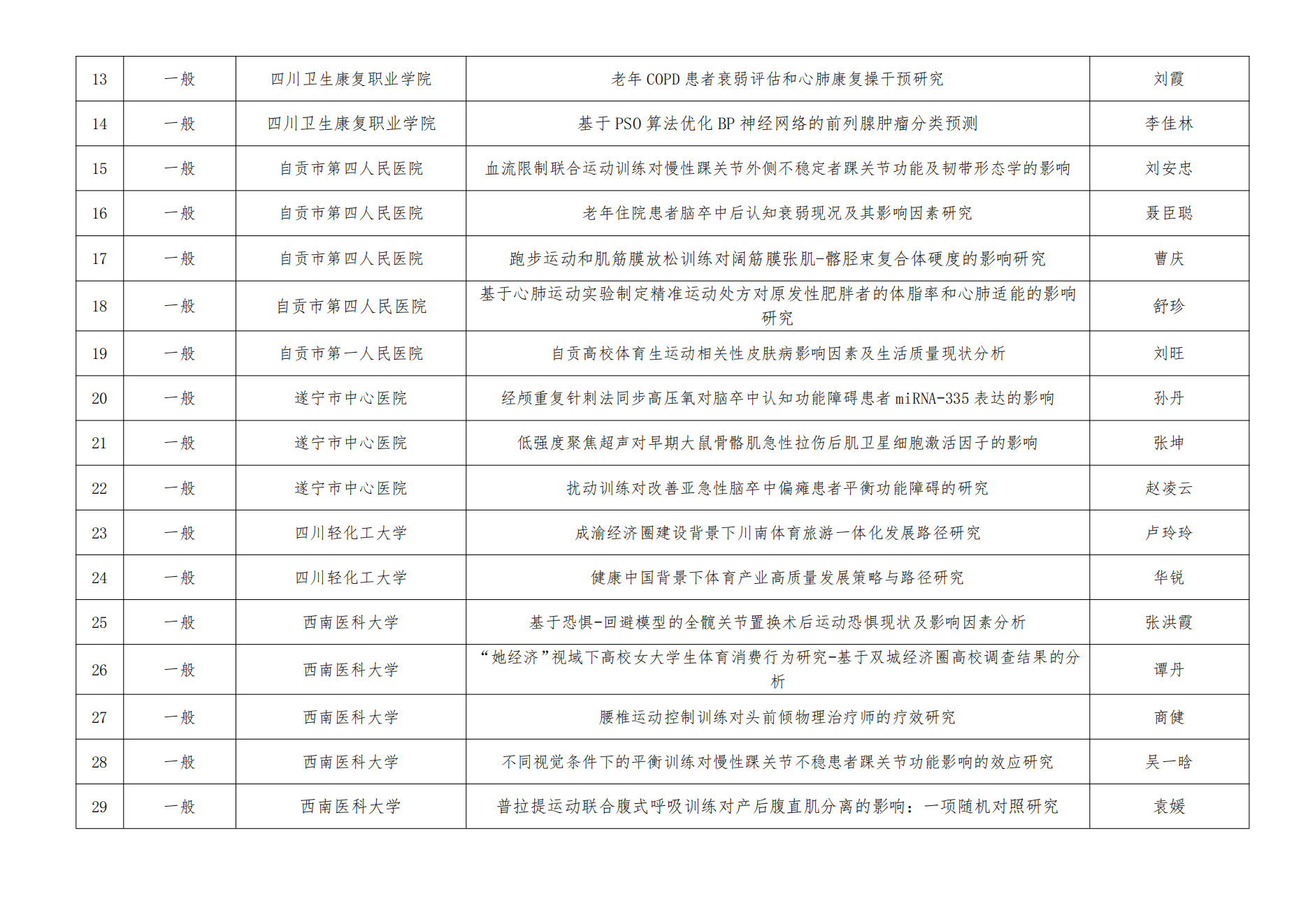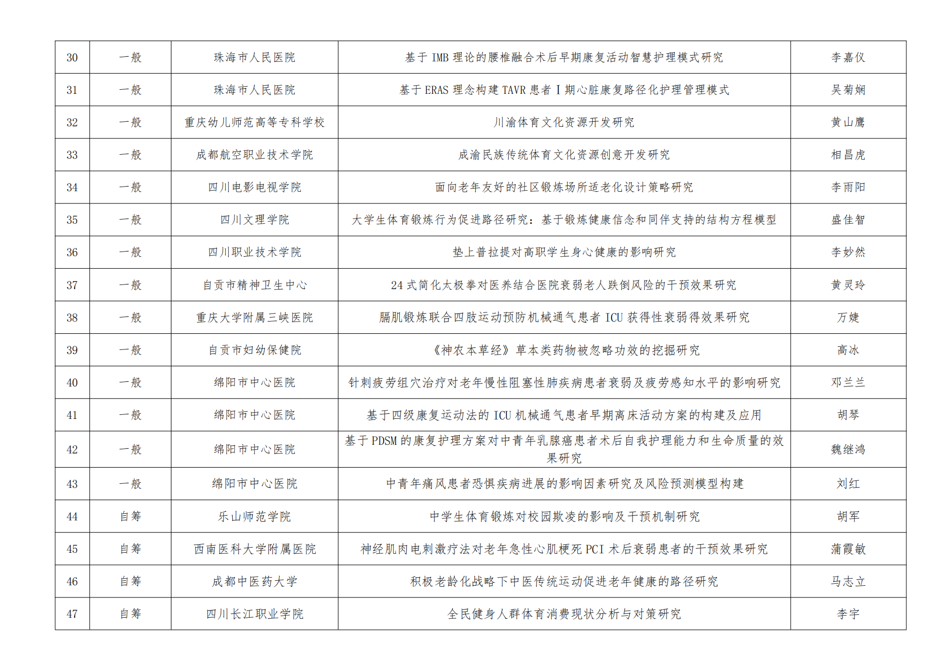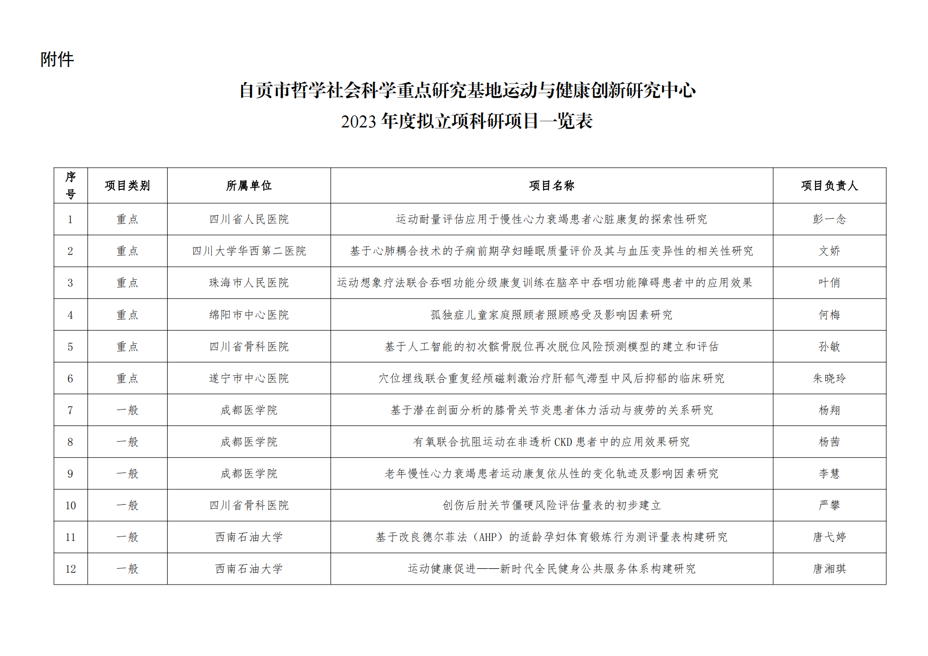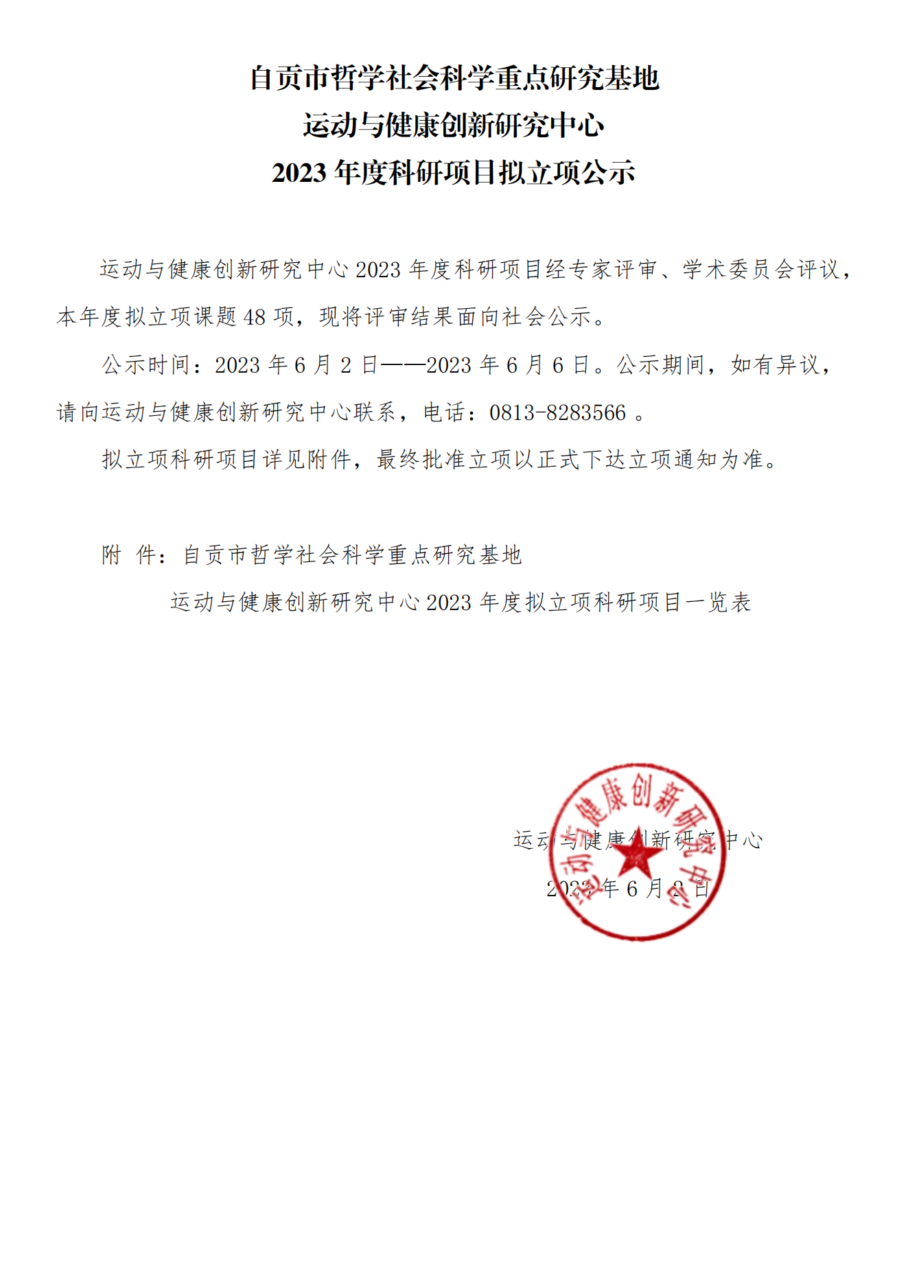 【公示】运动与健康创新研究中心2023年度科研项目拟立项公示